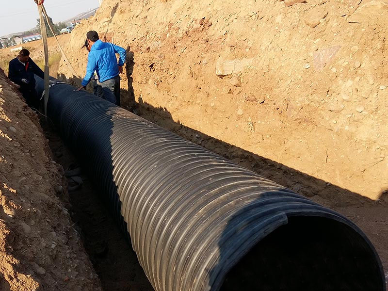 • 大型污水處理廠pe鋼帶增強螺旋波紋管施工現場